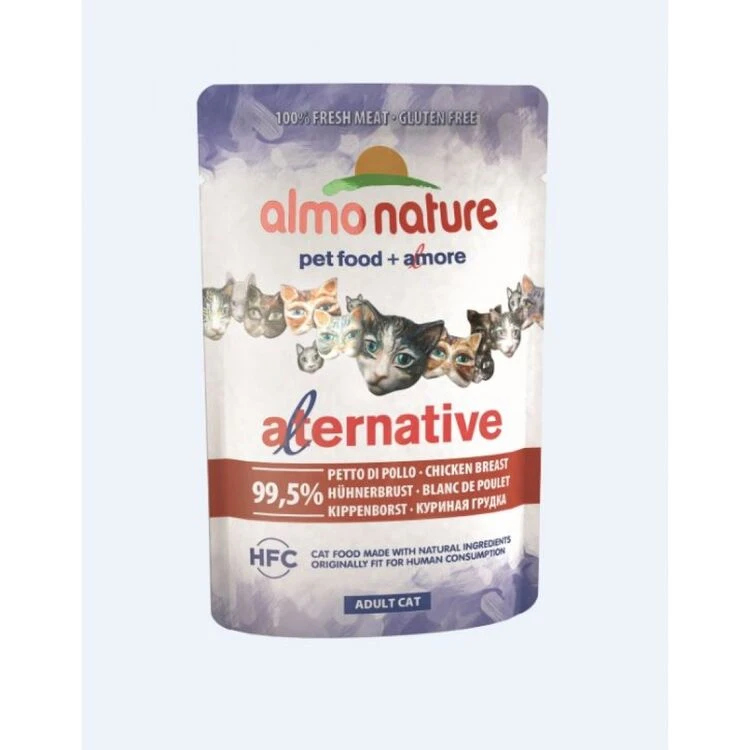 The best part of Almo Nature Alternative pet food production is that it’s the only pet food that certifies its ingredients originating from sources from the human food chain. Alternative also certifies the complete absence of animal meal (MEAT MEAL FREE) and is mono-protein and mono-lipid. The cooking method is as follows: the meat or fresh fish are not pre-cooked but, inserted raw directly into their packaging (bain-marie cooking)