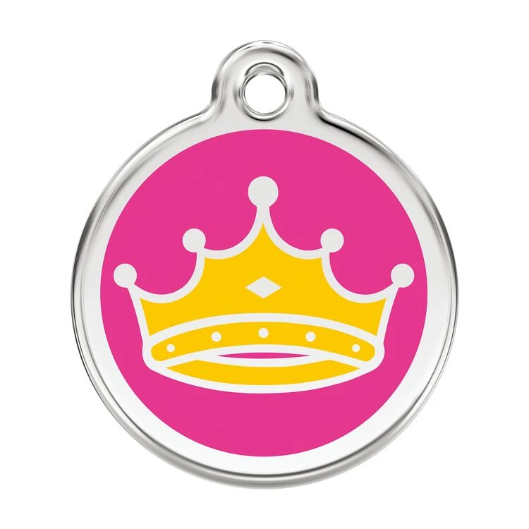 Red Dingo Stainless Steel Engraved Dog Tag Queen’s Crown Hot Pink